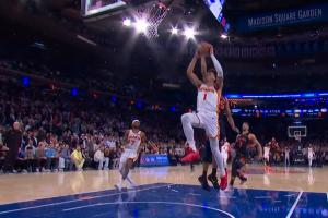 GIF-沃克切球布伦森,杰伦·约翰逊快攻扣篮